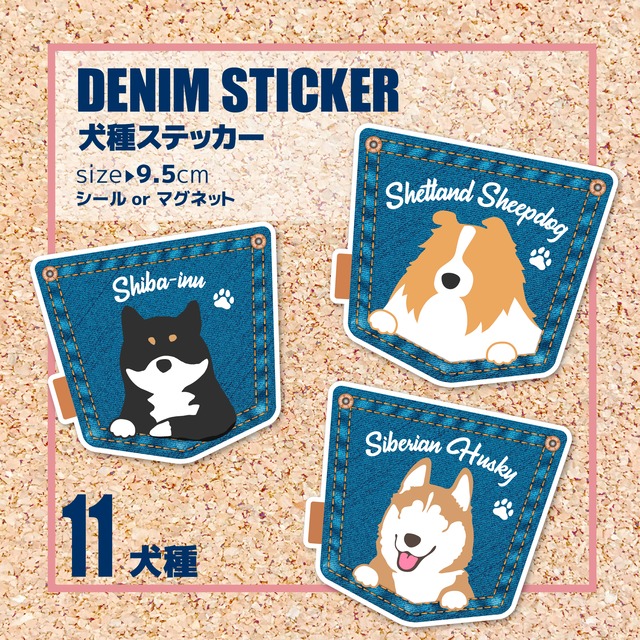 犬種ステッカー/デニム風【11犬種】シールorマグネット