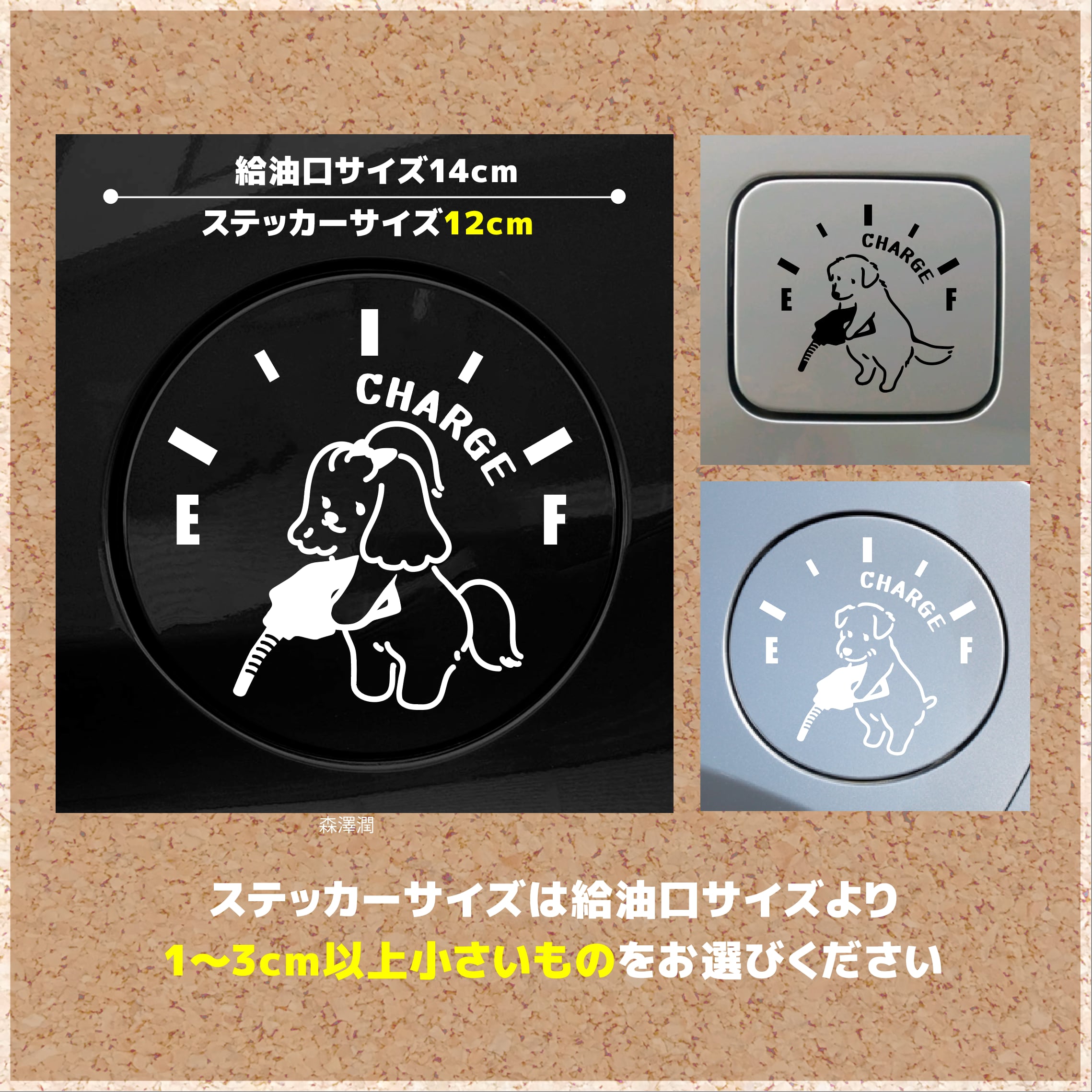 給油口サイズより1cm〜3cm小さいサイズをお選びください。