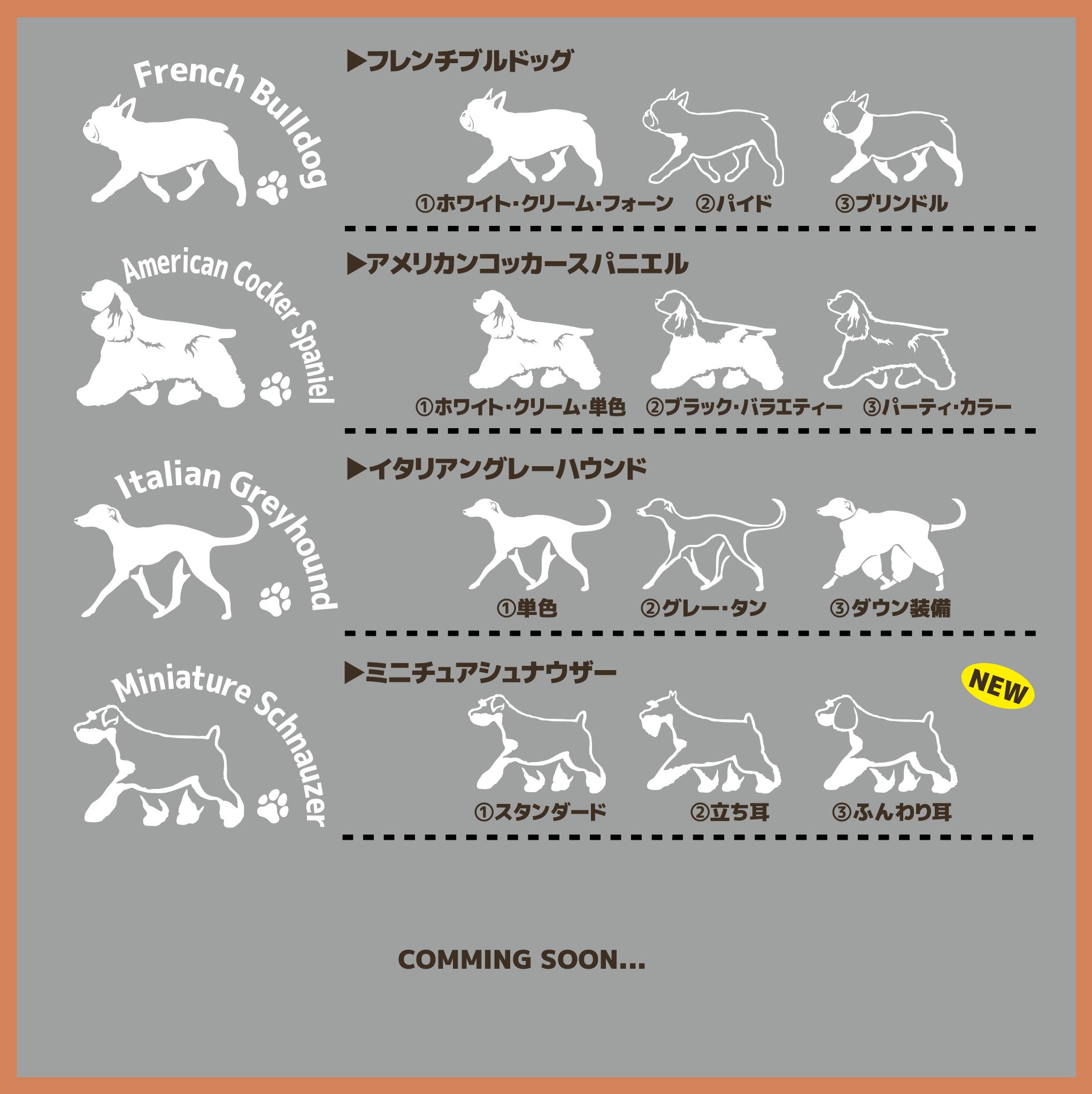 各犬種の柄の種類をオプションにてお選びください①〜③