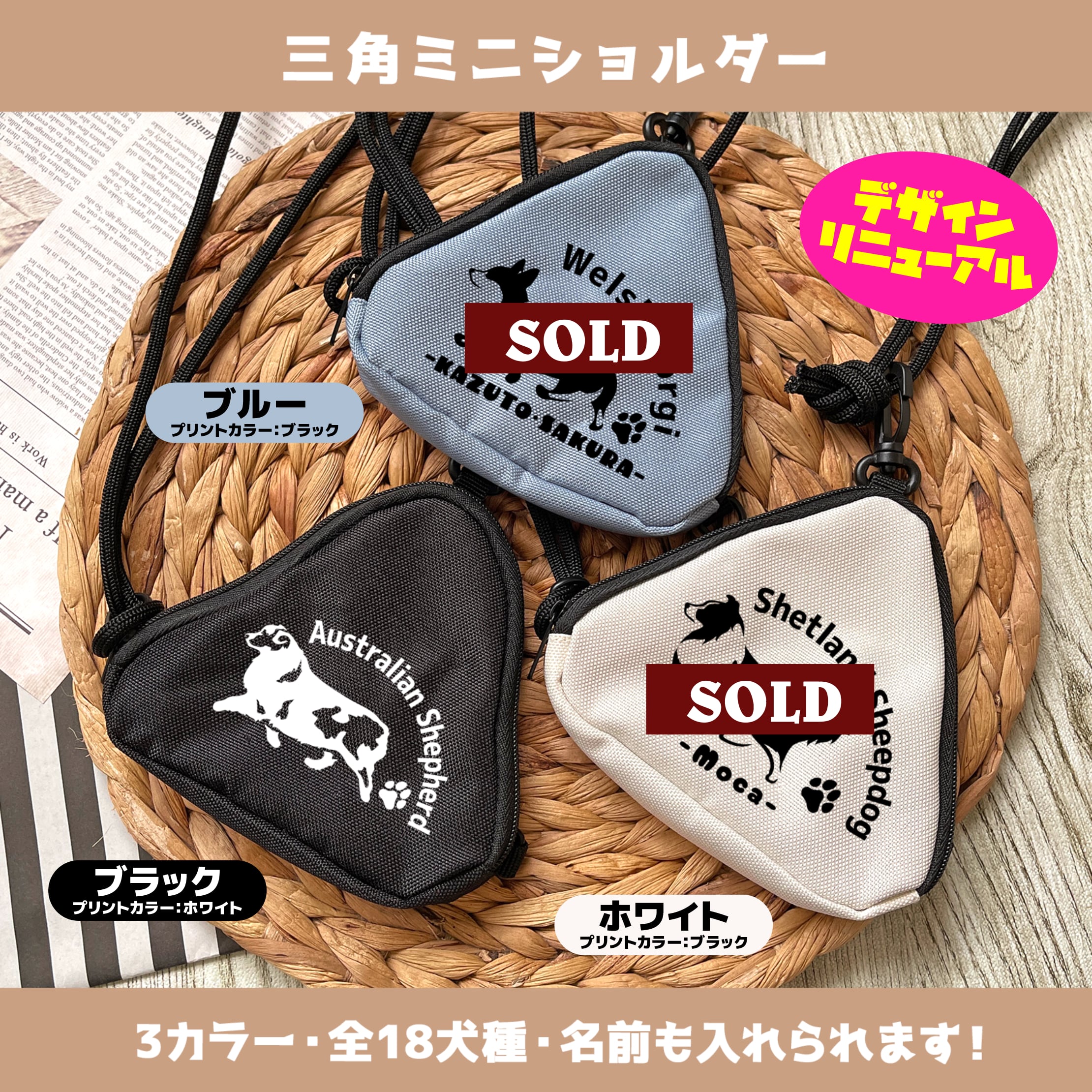 WALK三角ミニショルダー【19犬種デザインにリニューアル】