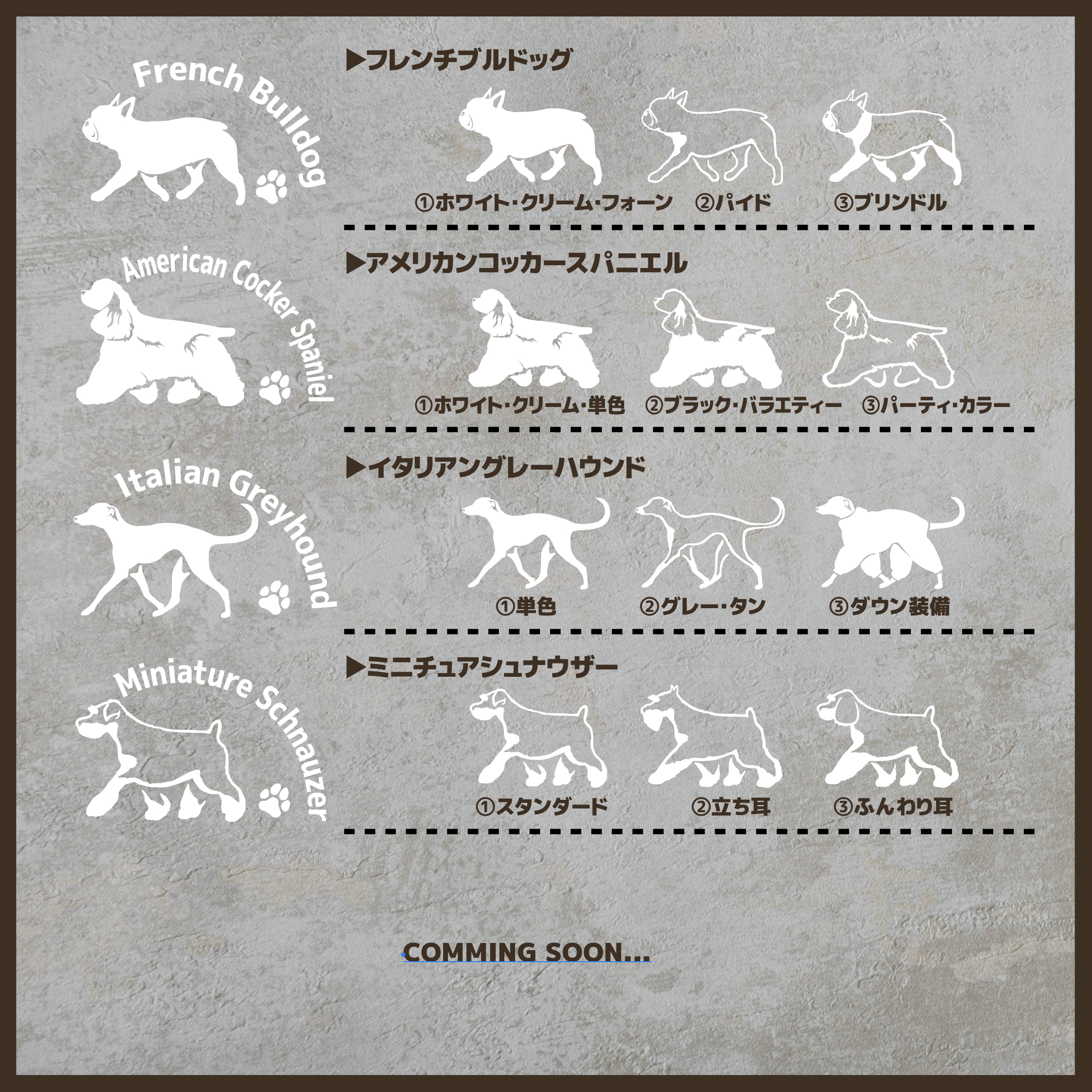 各犬種の柄の種類をオプションにてお選びください①〜③