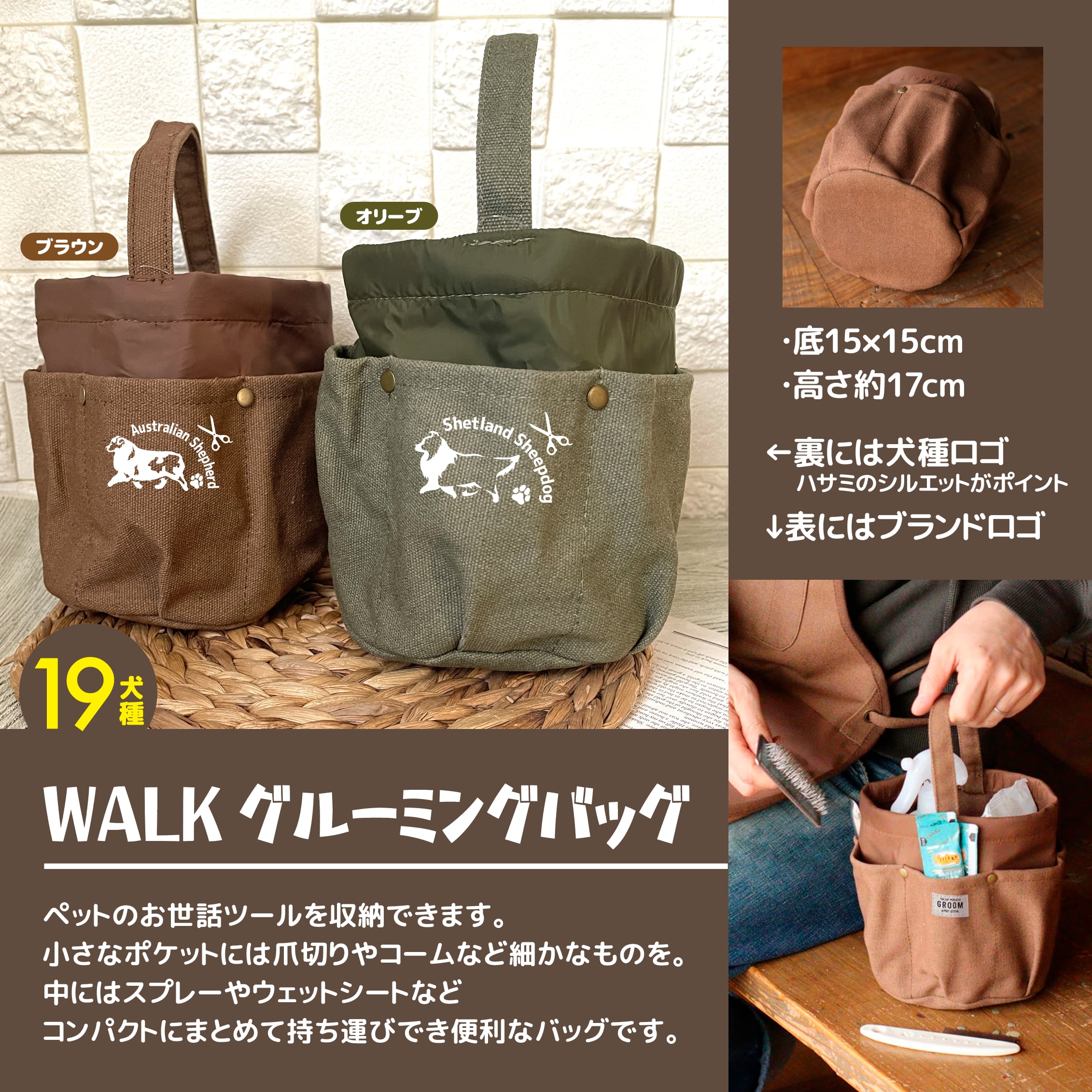 WALKグルーミングバッグ【2カーラー/19犬種】
