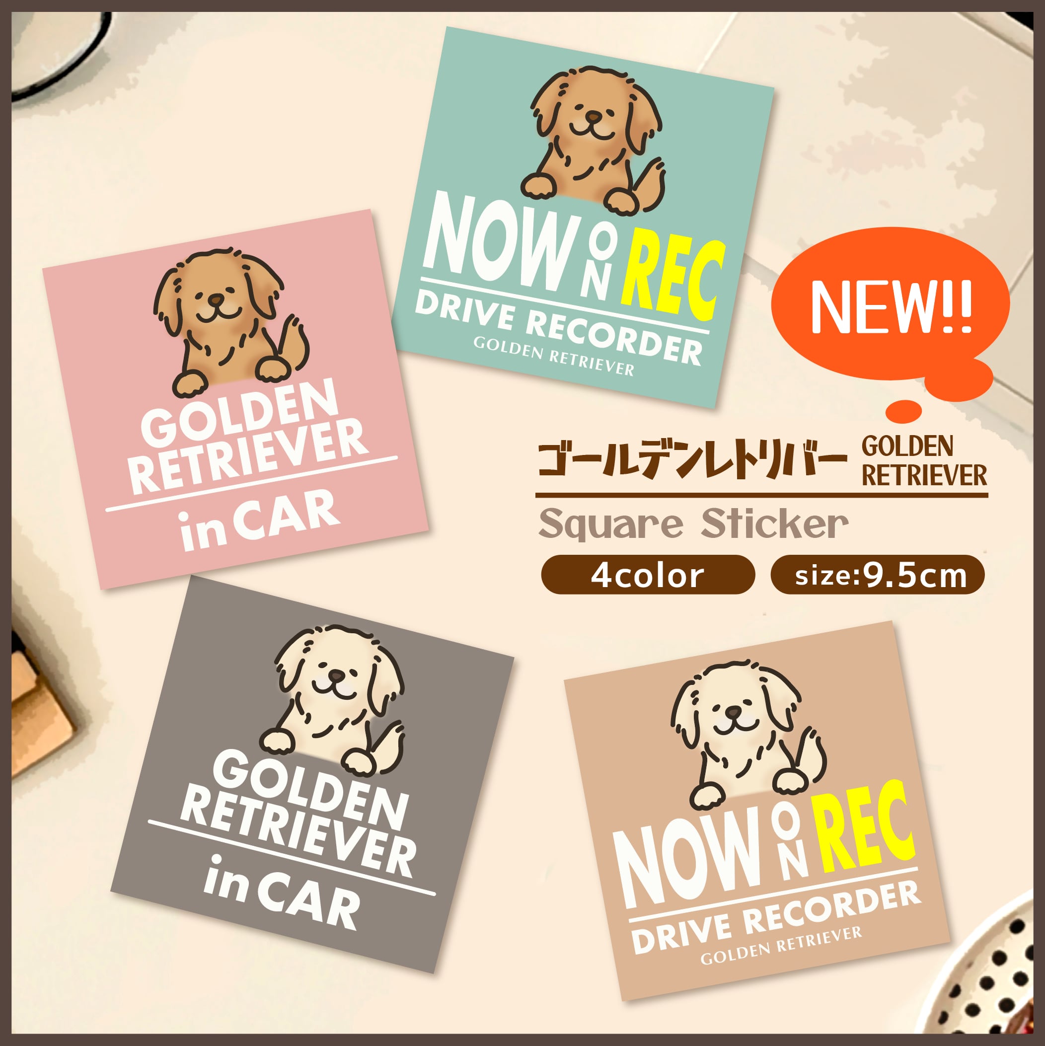 スクエアステッカー【ゴールデン】シールorマグネット