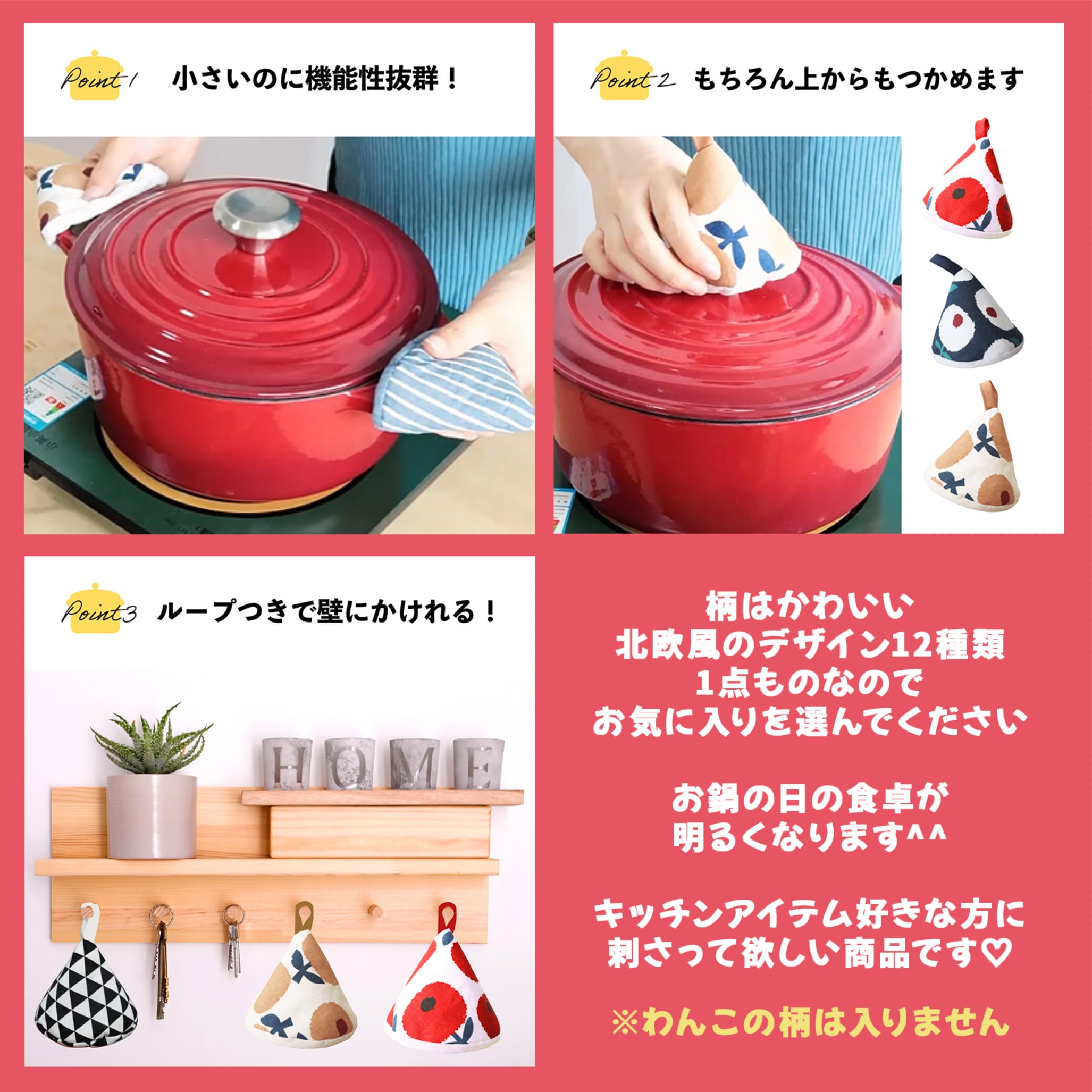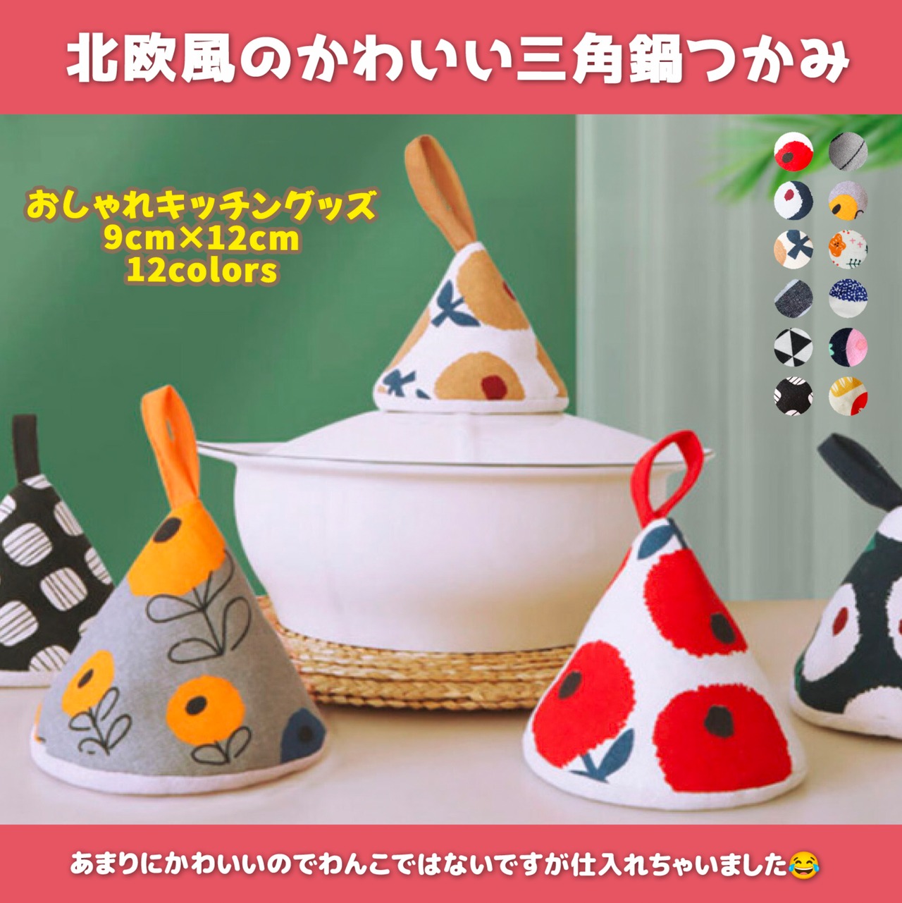 北欧風かわいい三角鍋つかみ【12color】1点もの