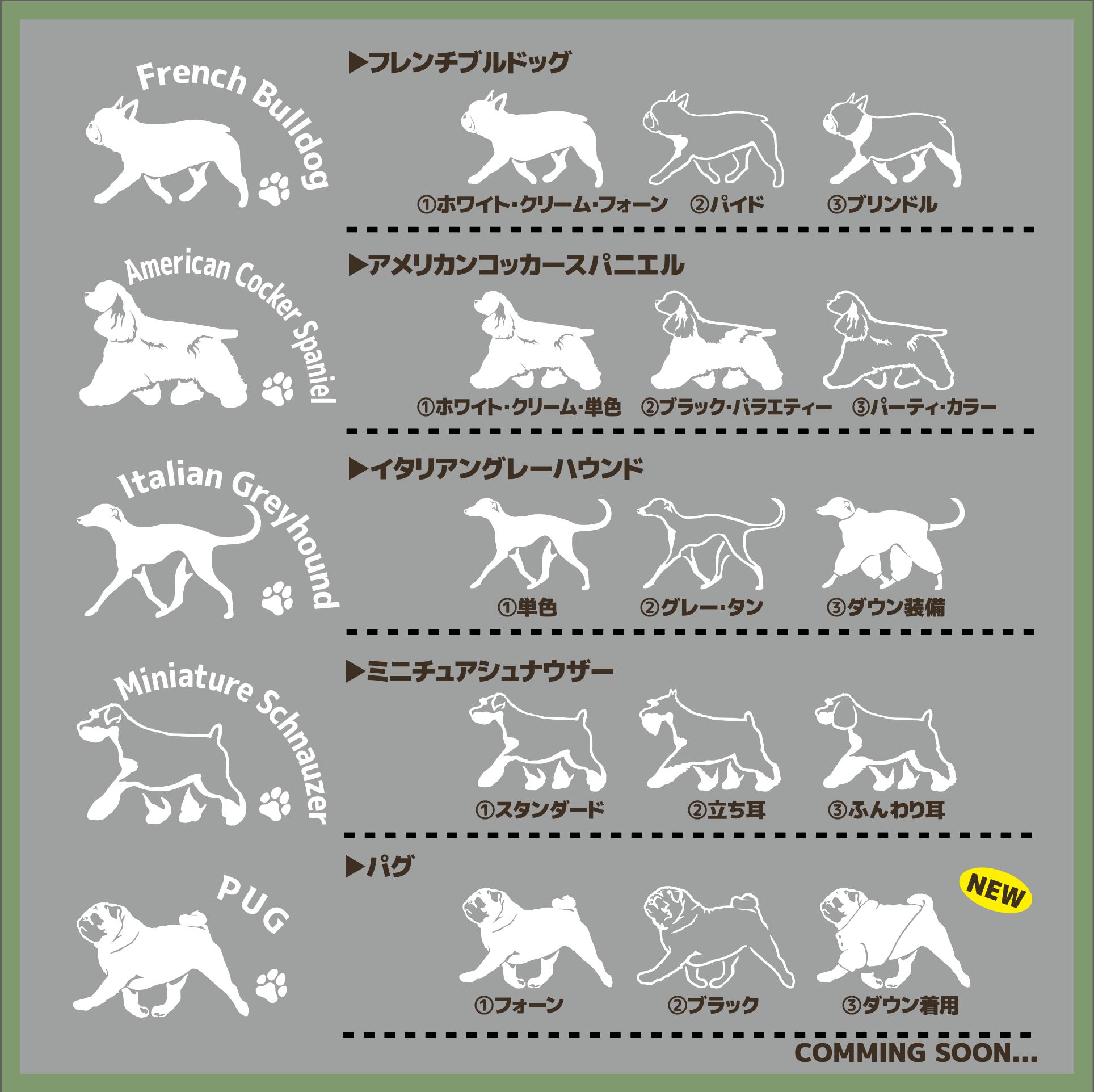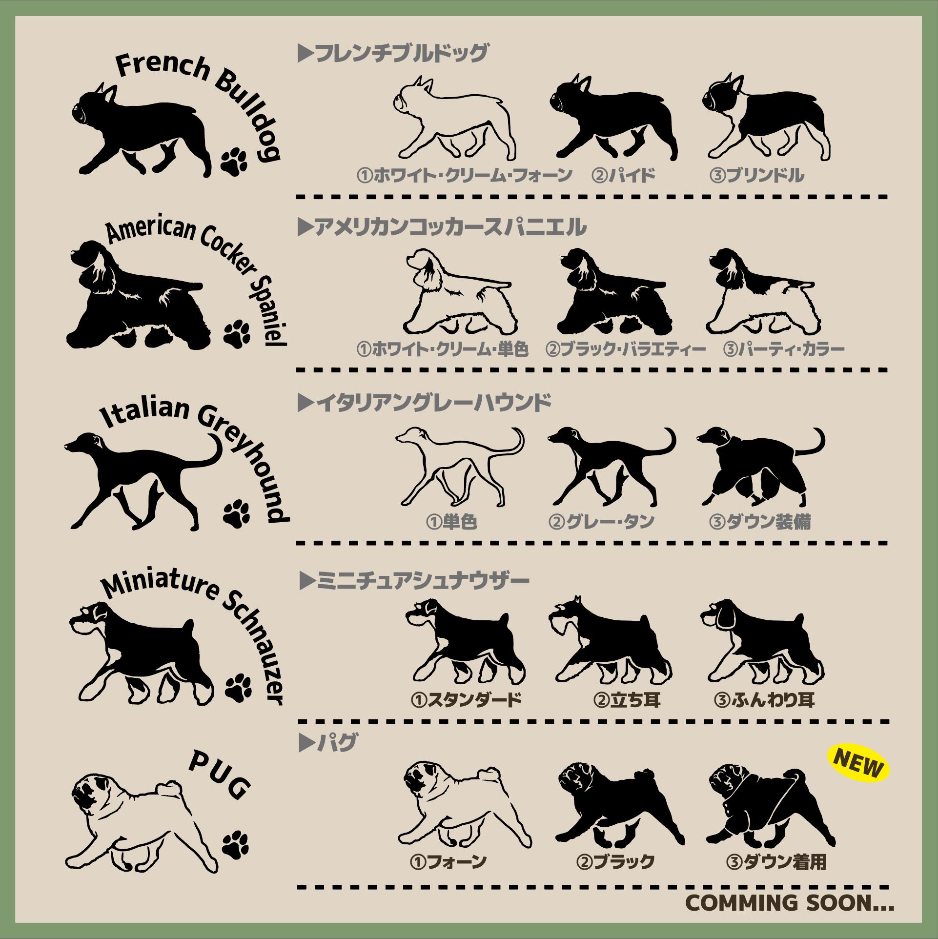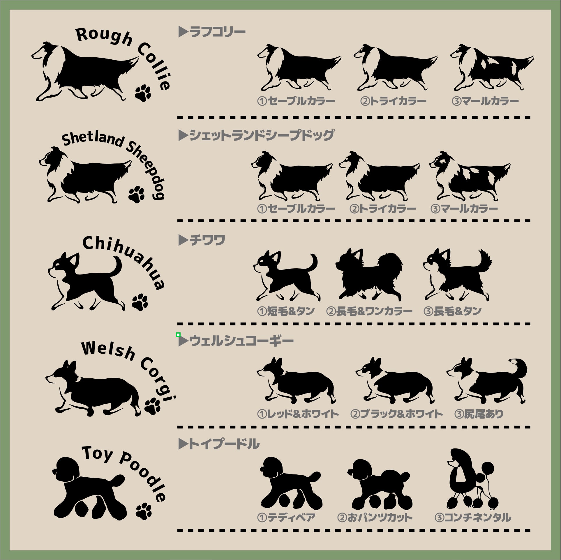 各犬種の柄の種類をオプションにてお選びください①〜③