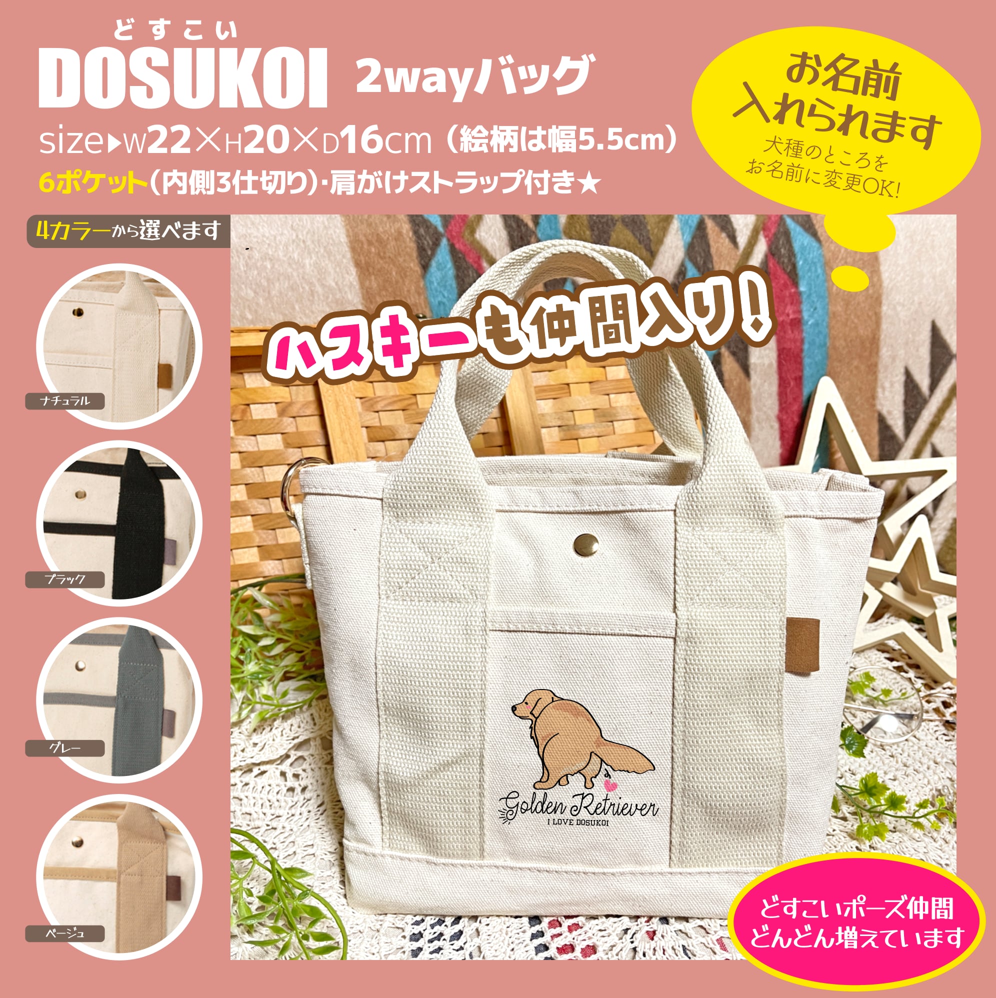 どすこいバッグ【4カラー&14犬種+うさぎ】名入れOK!!